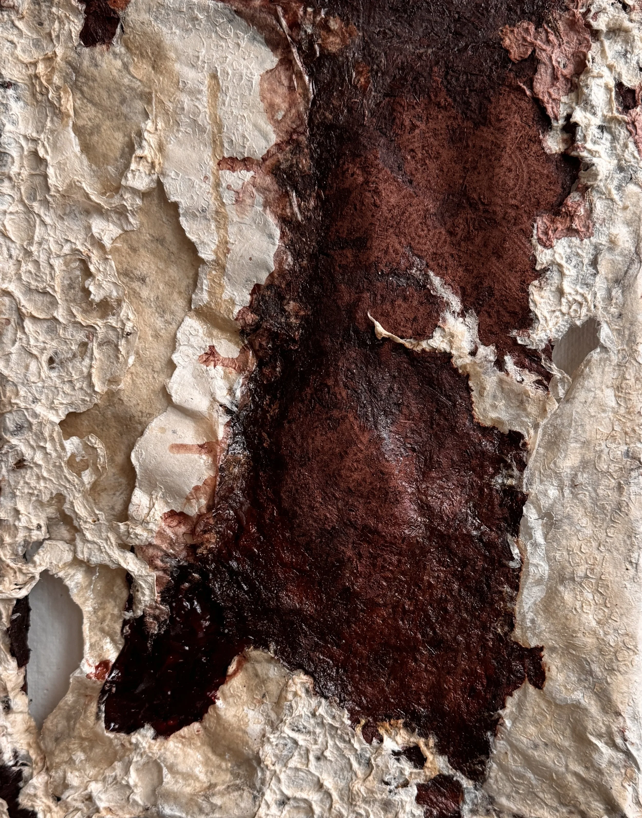 This series departs from Rana Hogarth’s text Medicalizing Blackness: Making Racial Difference in the Atlantic World, 1780-1840 which, in part, confronts made-up “disease” cachexia africana (earth-eating/craving), which European physicians assigned exclusively to enslaved Africans . Where the physicians debated whether it was a mental illness or a mark of profound homesickness, this work repositions this tendency as an act of sovereignty. The textures of these works nod to masticated terrain.