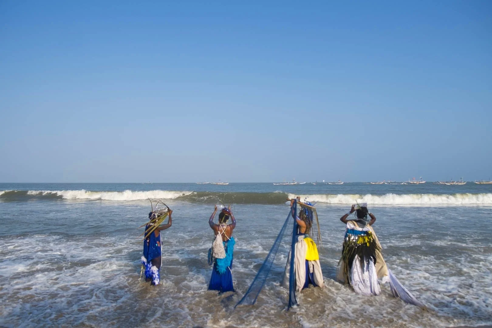 A performance by Ama BE, Ayana Evans, Megan Livingston, and Tsedaye Makonnen, African Body Snatchers was a TransAtlantic performance that carried water from the James River in Jamestown, Virginia to the shores of James Town, Accra, Ghana. The performance returns “source to source”, using waters and the act of water-bearing as a medium for divination, confrontation, and reconciliation.
